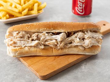 Sesame seed roll, herb mayo blend, peeled roast chicken