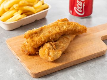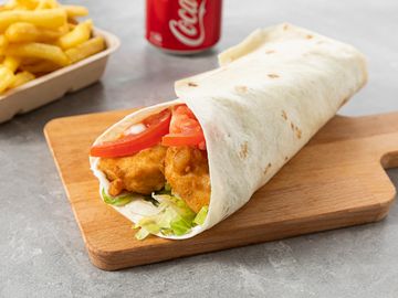 10" Tortilla, 2 southern fried chicken breast strips, mayo, lettuce, tomato