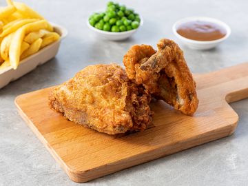 2 SFC pcs, serve chips or 2 potatoes, serve of peas, small gravy